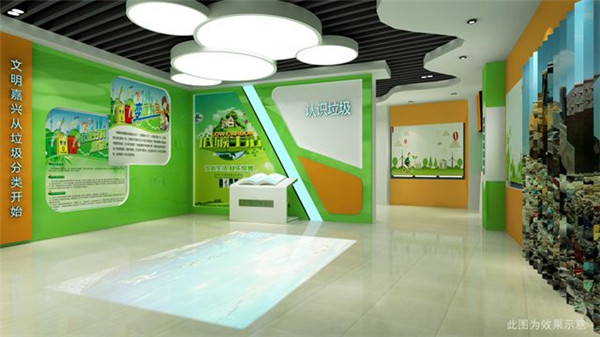 為了更好地寓教于樂,該基地在規(guī)劃設(shè)計上頗為用心。序廳里,通過弧形有機(jī)玻璃主題墻展示城市垃圾的藝術(shù)造型,將垃圾圍城的危機(jī)感,潛移默化傳遞給每一位參觀者。