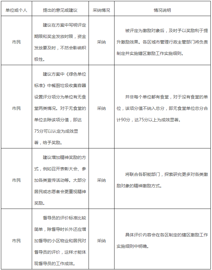 以上為征求意見稿的內(nèi)容。意見征集時間為5月30日至6月14日?,F(xiàn)將征求意見采納情況匯總?cè)缦拢?p style="text-indent: 2em;">