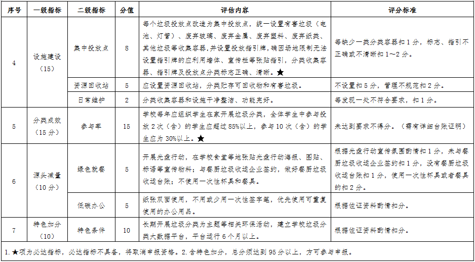 2.學(xué)校(含幼兒園、中小學(xué)和高校)。開展生活垃圾分類且成效顯著,具體條件詳見《生活垃圾分類綠色學(xué)校標(biāo)準(zhǔn)》。
