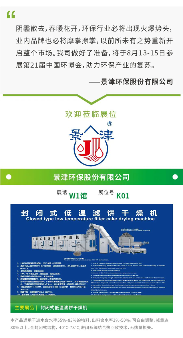 危機也是商機,事物都有雙面性,利與弊就看怎去平衡。疫情的影響是短暫的,后疫情時代環(huán)保市場將迎來強烈反彈,市場亟需更多的新技術和亮眼產品來指引。早動 、晚動還得要動,在競爭對手和行家都在觀望時,早點行動把握住行業(yè)大展的交流機遇,借此爭取吸引更多的目光,在疫情全面結束之后立刻占領處于“停滯”和“空白”的市場,這也許是大家說的時間機會!