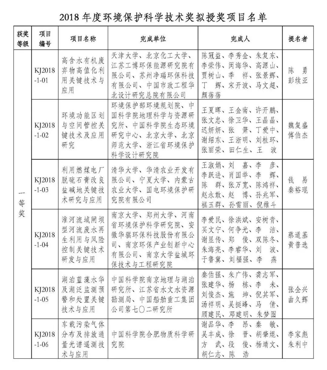 關(guān)于2018年度環(huán)境保護(hù)科學(xué)技術(shù)獎(jiǎng)擬授獎(jiǎng)項(xiàng)目的公示