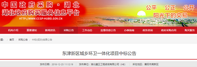 湖北省東津新區(qū)城鄉(xiāng)環(huán)衛(wèi)一體化項目發(fā)布中標公告,啟迪桑德環(huán)境資源股份有限公司成為中標的社會資本方,中標金額為4120.173738萬元/年,實施期限3年,期限內項目總金額達1.24億。
