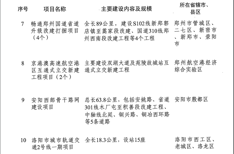 導(dǎo)讀:河南省發(fā)改委發(fā)布《關(guān)于印發(fā)2019年河南省重點(diǎn)建設(shè)項(xiàng)目名單的通知》。名單共列項(xiàng)目910個(gè),總投資3.1萬(wàn)億元,2019年計(jì)劃完成投資7939億元,涵蓋了產(chǎn)業(yè)轉(zhuǎn)型發(fā)展、創(chuàng)新驅(qū)動(dòng)、基礎(chǔ)設(shè)施、新型城鎮(zhèn)化、生態(tài)環(huán)保、民生和社會(huì)事業(yè)六大領(lǐng)域18個(gè)行業(yè)。其中計(jì)劃竣工項(xiàng)目149個(gè)、續(xù)建項(xiàng)目433個(gè)、計(jì)劃新開工項(xiàng)目317個(gè)、前期項(xiàng)目11個(gè)。