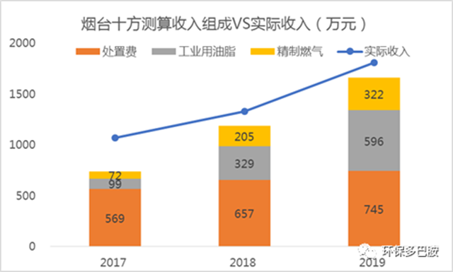 3)在煙臺項(xiàng)目中,政府處置費(fèi)占比45%,粗油脂銷售占比36%,精制燃?xì)怃N售占比19%。這主要是由于煙臺項(xiàng)目實(shí)際處置量低于政府保底量,因而實(shí)際處置產(chǎn)生的粗油脂及燃?xì)怃N售較低,而政府依據(jù)保底量付出的處置費(fèi)占比較高。