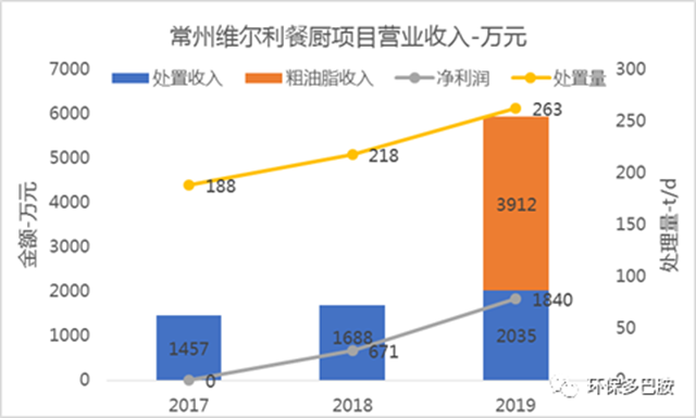 常州項(xiàng)目的盈利,一方面依賴于地方政府及維爾利在當(dāng)?shù)厥者\(yùn)工作的顯著進(jìn)步,公司餐廚垃圾收運(yùn)量從17年的吃不飽到2019年日處理量平均達(dá)263噸/天,以至于公司在2019年底啟動了再造一個常州項(xiàng)目(即常州市餐廚廢棄物物一期工程擴(kuò)建項(xiàng)目,設(shè)計(jì)產(chǎn)能同一期,建成后達(dá)到440噸/天)。