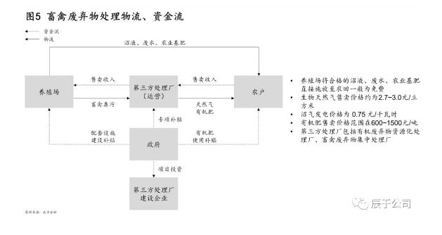 第三方企業(yè)主要通過直接參與政府招標項目或與養(yǎng)殖企業(yè)合作兩種方式入局這一市場。政府招標項目大多為政府付費,如入庫PPP則為“使用者付費+可行性缺口補助(如有)”的方式;與養(yǎng)殖企業(yè)合作的商業(yè)邏輯則在于收購廢棄物后資源化處理,形成生物天然氣、有機肥等,進行銷售后獲得收入(如圖5)。
