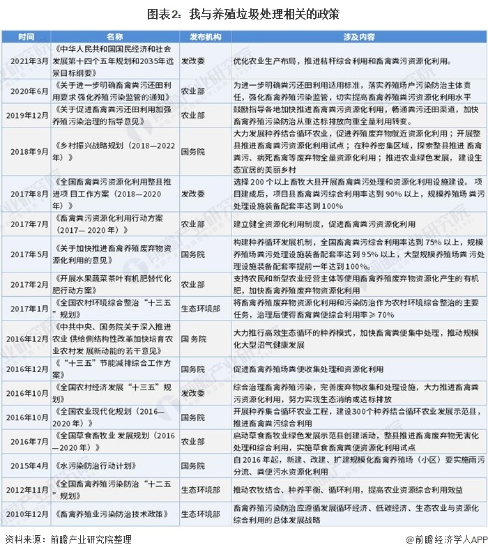 原標(biāo)題:2021年中國養(yǎng)殖垃圾處理行業(yè)政策匯總與發(fā)展趨勢分析 能源化與肥料化是主要利用方向