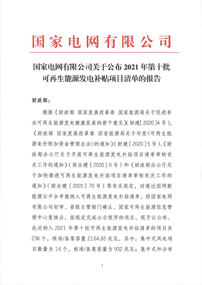 根據(jù)《財政部 國家發(fā)展改革委 國家能源局關(guān)于促進非水可再生能源發(fā)電健康發(fā)展的若干意見》(財建〔2020〕4號)、《財政部 國家發(fā)展改革委 國家能源局關(guān)于印發(fā)<可再生能源電價附加資金管理辦法>的通知》(財建〔2020〕5號)、《財政部辦公廳關(guān)于開展可再生能源發(fā)電補貼項目清單審核有關(guān)工作的通知》(財辦建〔2020〕6號)和《財政部辦公廳關(guān)于加快推進可再生能源發(fā)電補貼項目清單審核有關(guān)工作的通知》(財辦建〔2020〕70號)等有關(guān)規(guī)定,國家電網(wǎng)有限公司積極配合各省級能源主管部門和國家可再生能源信息管理中心,為符合中央財政補助條件的可再生能源發(fā)電項目提供補貼清單申報服務(wù)。