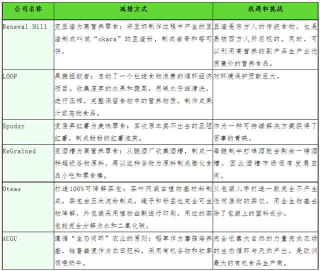 在企業(yè)踐行循環(huán)經濟理念方面,企業(yè)通過產業(yè)鏈互補和結合等合作方式,通過利用副產物制造有價值的食品,減少生產消耗。例如,Renewal Mill公司將豆奶制作過程中產生的豆渣制成叫做“okara”的豆渣粉,制成曲奇和塔可餅。除此以外,ReGrained公司從釀酒廠收集酒糟,制成一種超級谷物原料,再以這種谷物為原料制成膨化食品小吃和零食棒。食品循環(huán)經濟發(fā)展有助于充分實現(xiàn)食品價值,但是在食品生產過程中,可利用的副產物價值有限,且其經濟回報有待考究。