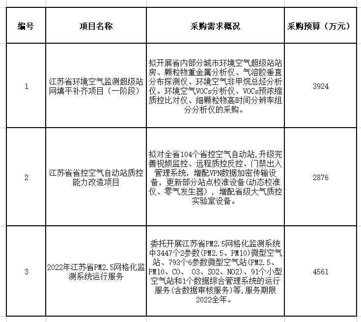 原標(biāo)題:超1.1億!江蘇一批大氣項目采購意向公布