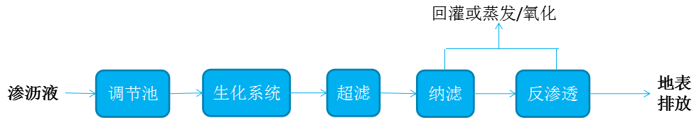 對(duì)于垃圾填埋設(shè)施,按照《生活垃圾填埋場(chǎng)污染控制標(biāo)準(zhǔn)》(GB 16889-2008)的要求,采取場(chǎng)內(nèi)自處理方式,需在場(chǎng)內(nèi)自建滲濾液處理設(shè)施,出水達(dá)標(biāo)后直接排放自然水體。這種處理方式下,產(chǎn)生的滲濾液濃縮液往往采取回灌或回流方式,造成污染物在填埋場(chǎng)內(nèi)持續(xù)富集,影響滲濾液處理系統(tǒng)有效穩(wěn)定運(yùn)行。