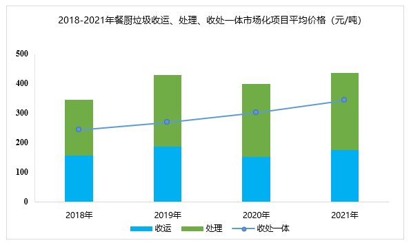 據(jù)E20數(shù)據(jù)庫統(tǒng)計,廚余垃圾收運(yùn)市場的價格與地區(qū)相關(guān)性較大,平均收運(yùn)價格145元/噸,處理環(huán)節(jié)的平均中標(biāo)價為239元/噸,收處一體化價格為340元/噸,略高于餐廚垃圾的平均水平,并且呈逐年上漲的趨勢。因此,隨著垃圾分類工作的全面推進(jìn)及中標(biāo)價格的上漲,預(yù)計“十四五”期間廚余垃圾處理市場將迎來新一輪推動。