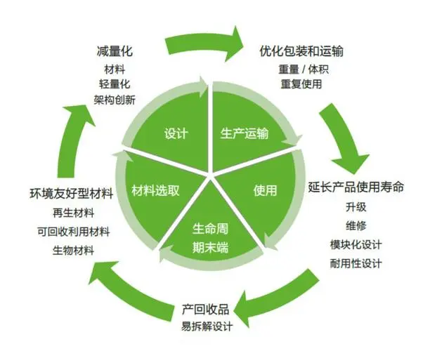 通過對設(shè)計(jì)結(jié)構(gòu)的改進(jìn),輕量化設(shè)計(jì),材料循環(huán)回收利用等,從而減少自然資源的使用,可從生產(chǎn)加工、消費(fèi)使用、用后遺棄等方面全面減少對生態(tài)的破壞。