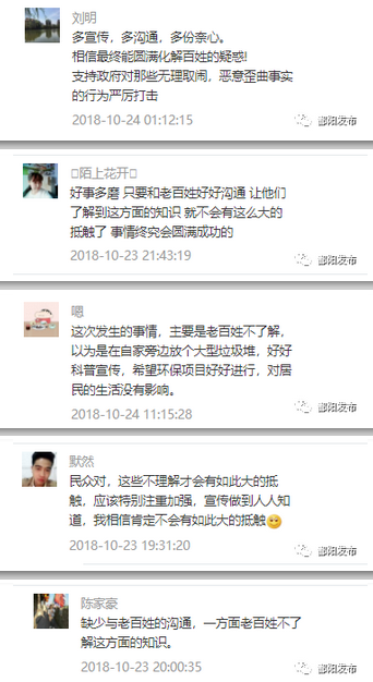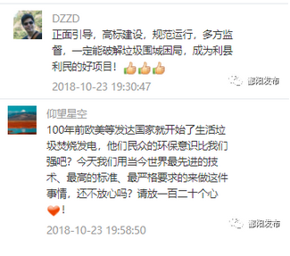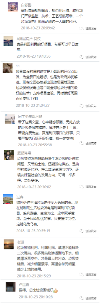 短時間內(nèi),《哦!生活垃圾焚燒發(fā)電原來是這么回事!》一文閱讀量突破三萬,可見鄱陽縣社會各界對該項目的廣泛關(guān)注。網(wǎng)友的留言中有90%對鄱陽縣建造生活垃圾焚燒發(fā)電廠表示認可、鼓勵。