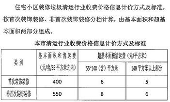 注:只有毛坯房的裝修屬于表格中所謂的首次裝飾裝修,買的精裝修新房再裝修的的話就屬于非首次裝修裝飾;小區(qū)裝修垃圾清運(yùn)費(fèi)的收費(fèi)標(biāo)準(zhǔn)會(huì)隨著社會(huì)各類相關(guān)成本的改變而調(diào)整,但每次調(diào)整都會(huì)事先公布。